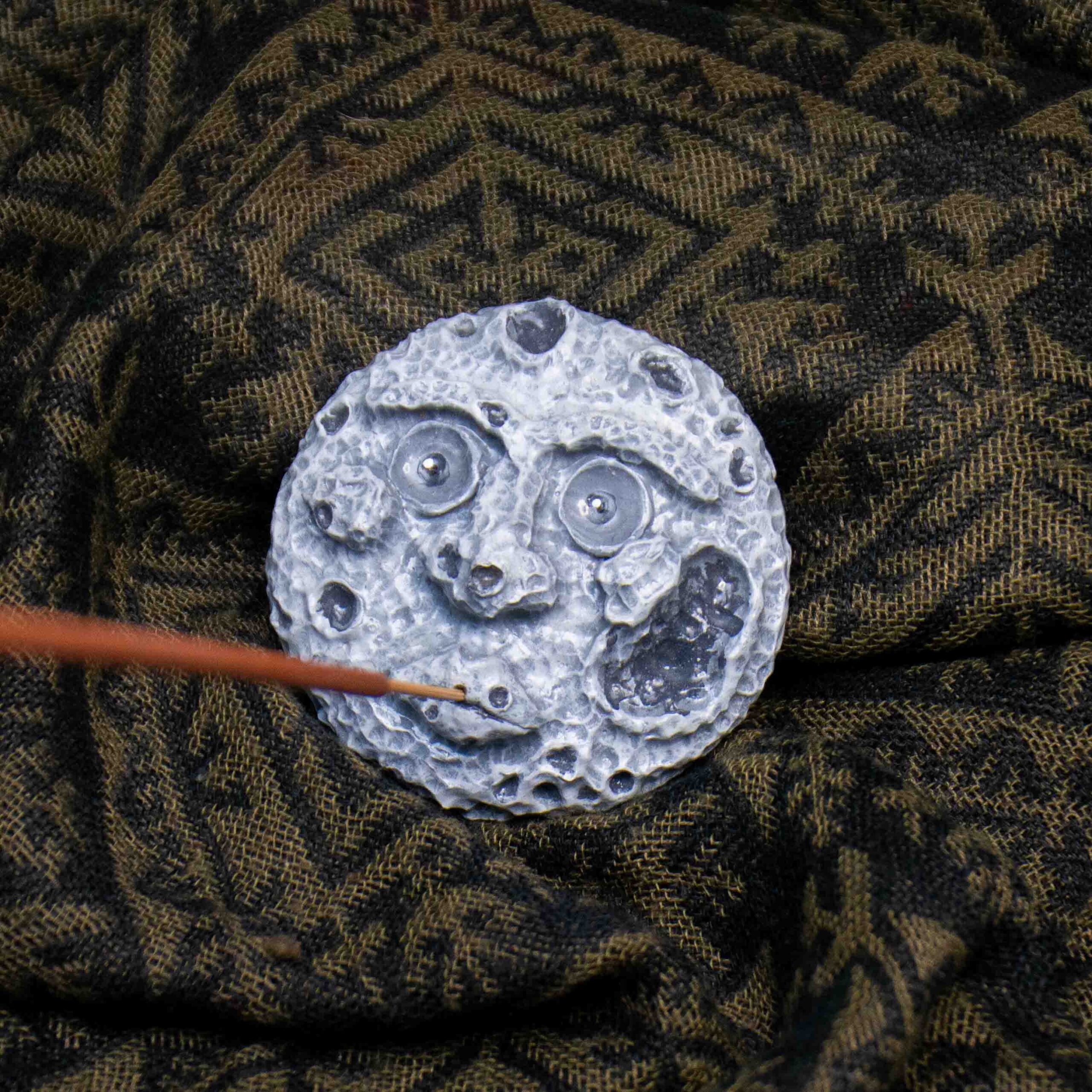 Hand crafted incense holder for stick incense. Shaped like the Moon. Because of the hand made nature of these incense holders, each is unique.
